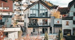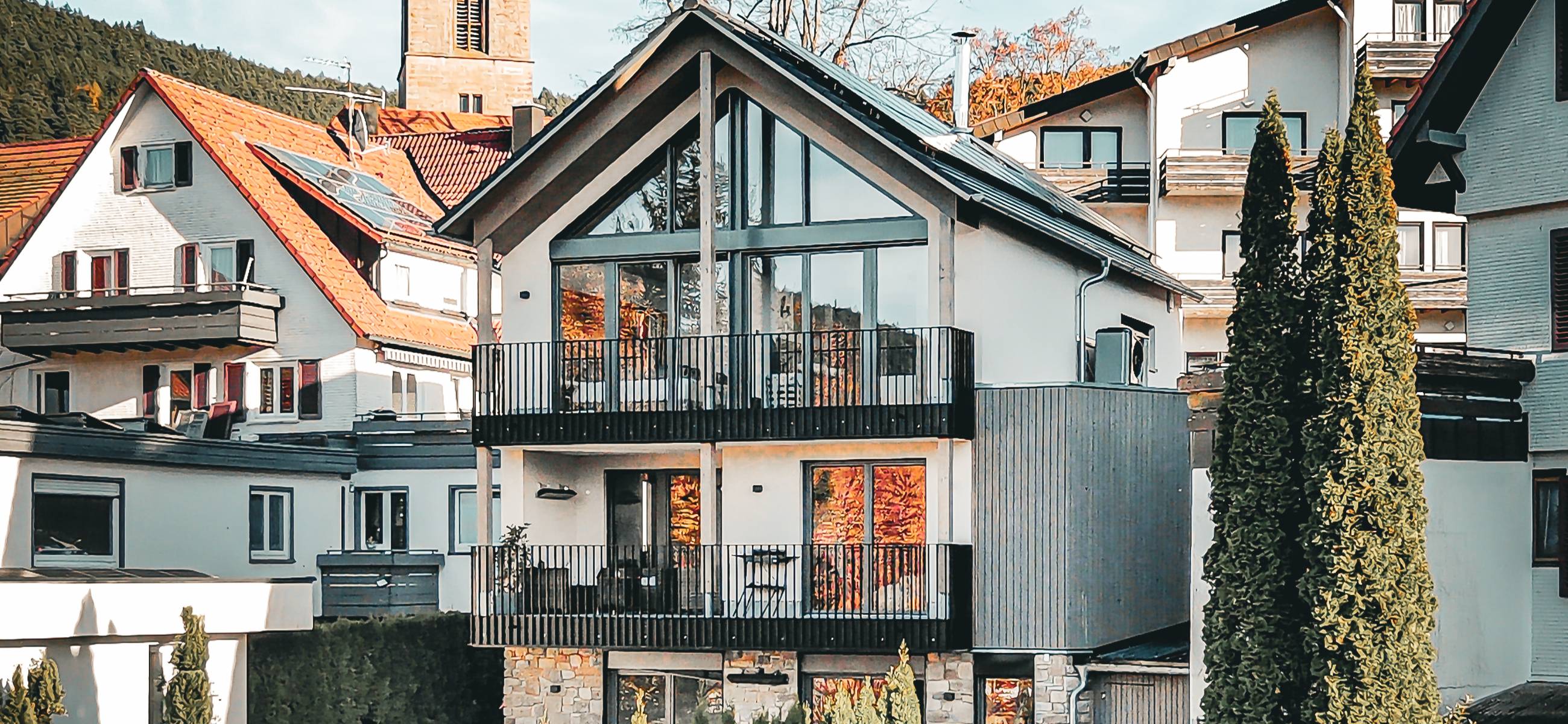 In einem bebauten Ortsteil von Baiersbronn enstand ein Einfamilienhaus am Hang.